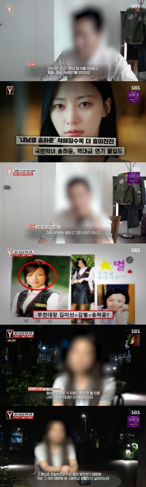 지난 5일 방송된 SBS '궁금한 이야기Y'에서는 1년 넘게 지속해 온 배우 송하윤의 학교폭력 논란에 대해 다뤘다.