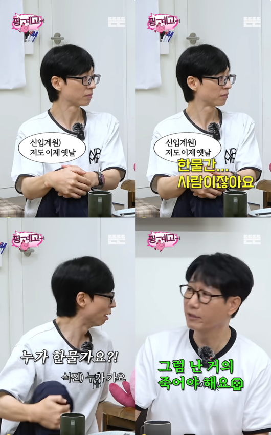 유재석은 깜짝 놀라 “누가 한물가요? 그런 얘기 함부로 하지 마세요”라고 발끈했고, 지석진은 “그럼 난 거의 죽어야 해요”라고 반발했다.
