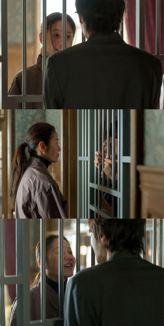 사진 속 정이신은 1회에서 아들 차수열과 만났던 연금주택 안에 있다. 정이신은 자신을 가둔 무거운 창살을 사이에 두고 의문의 남성과 대화 중이다. 정이신의 자신감 넘치는 표정과 흔들림 없는 눈빛이 미묘한 긴장감을 유발한다. 특히 마지막 사진에서는 정이신이 몸을 움직여 어떤 남자의 얼굴 가까이까지 확 다가간 모습. 정이신의 번뜩이는 눈빛이 보는 사람까지 숨을 멈추고 집중하게 만든다.