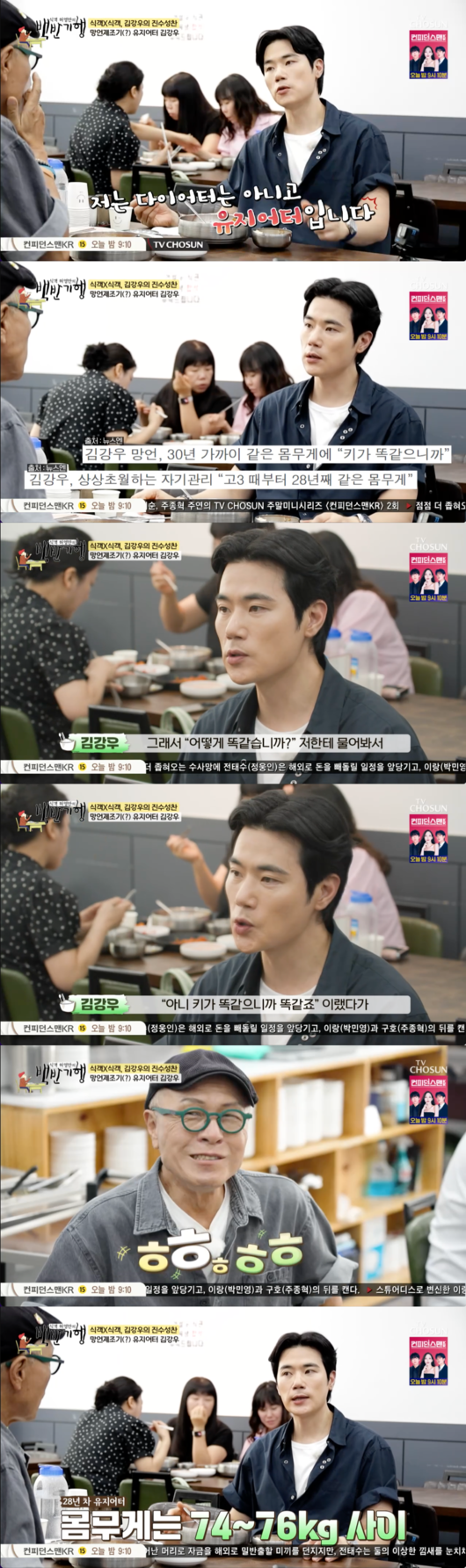이날 김강우는 철저한 자기관리 비법에 대해서도 솔직하게 털어놨다. "저는 다이어터가 아니라 유지어터"라고 말하며, "고등학교 3학년 때부터 몸무게가 똑같다"고 밝혀 모두를 놀라게 했다.