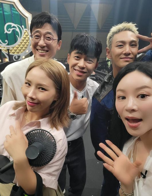 7일 신봉선은 ‘복면가왕 #이윤석 #리사 #마선호 # 백호’라며 여러 장의 사진을 게재했다.
