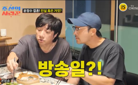 윤정수가 배기성. 임형준을 만났다. 배기성은 "윤정수가 두달 전. 결혼할 것 같다고 넌지세 말했다"며 "근데 진짜 이번에 꼭 하는 거냐"며 농담, "그래도 우리에게 이 정도면 빨리말한 것"고 했다.
