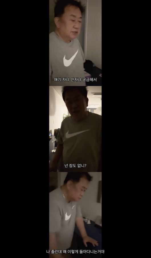 영상에는 새벽에 부스스한 얼굴로 무언가를 찾고 있는 이용식의 모습이 담겨 있다. 이용식은 “그거 하나만 먹고 자려고”라고 말했다.