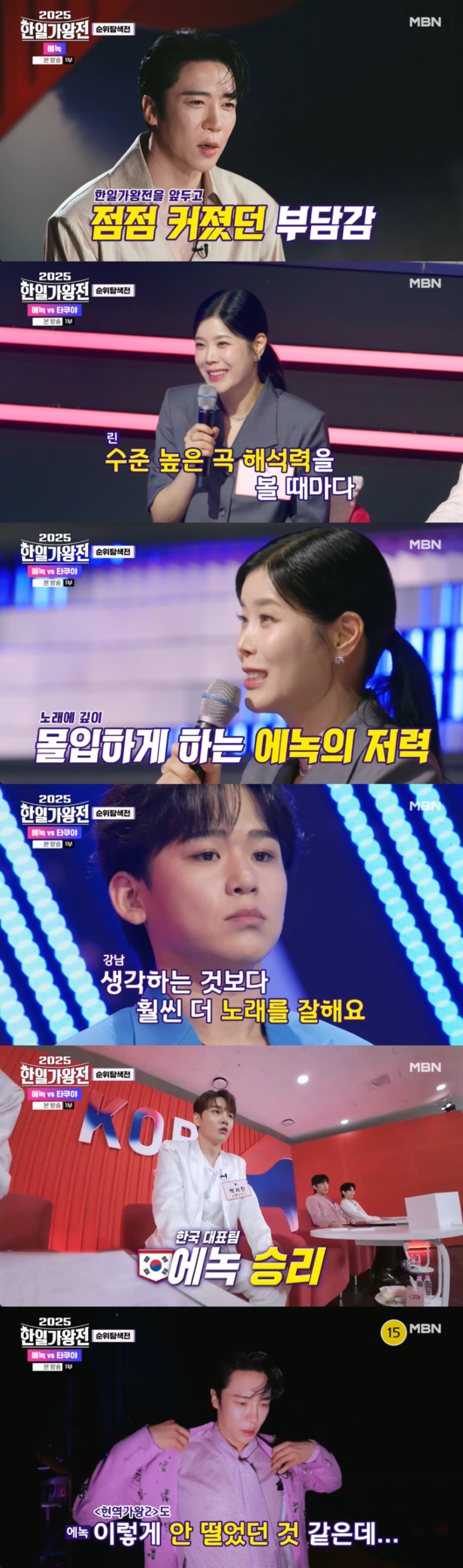 '2025 한일가왕전’ 가수 에녹이 극심한 긴장감 속에서도 승리를 거머쥐며 존재감을 과시했다.