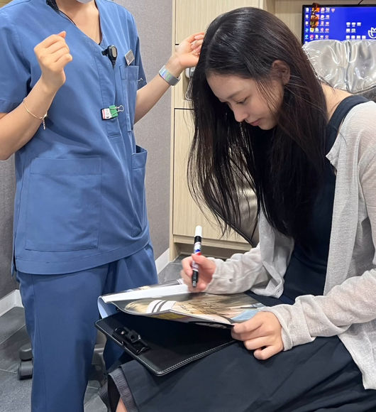 9일 온라인 커뮤니티를 통해 해린의 근황이 전해졌다. 공개된 사진 속 해린은 서울의 한 치과에서 자신의 앨범에 사인을 남기고 있는 모습이다.