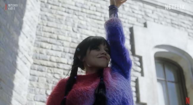 특히 웬즈데이(제나 오르테가)가 알록달록한 옷을 입고 화장을 한 채 그룹 블랙핑크의 '붐바야'에 맞춰 추는 장면은 팀 버튼 감독이 넣은 회심의 장면으로 국내를 넘어 글로벌 K팝 팬들에게 회자되고 있다.