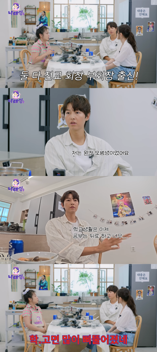 이에 박나래는 “옆 학교 여고에서 송중기 씨 보러 많이 왔다던데”라고 말했고, 송중기는 “친구들이 그런 얘기를 해줬었는데 그 당시에는 그렇게 까지는 몰랐다. 저는 진짜 공부만 하던 재미없는 학생이었다”고 했다.