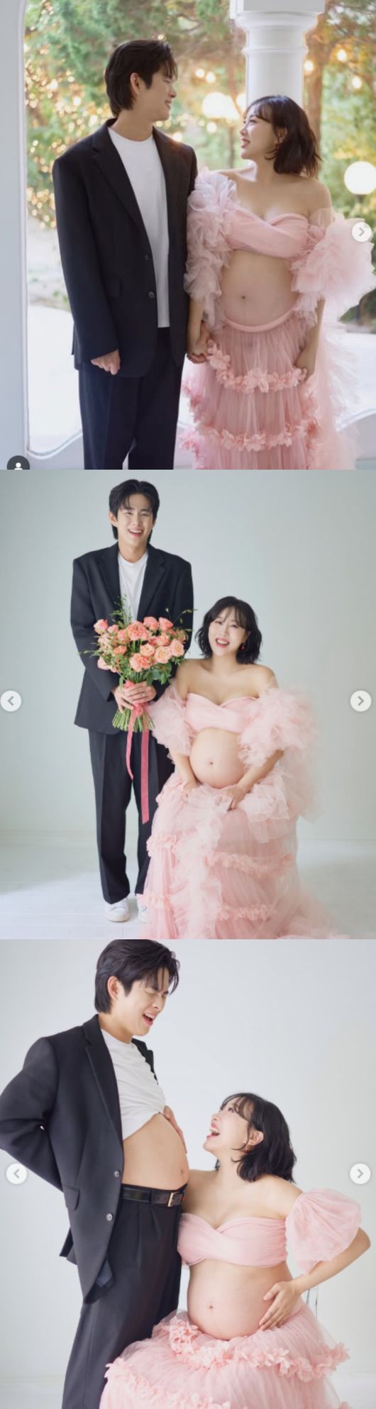 이어 “25주때 미리 찍었던 만삭사진이 나왔어요. 유튜브에 만삭사진 브이로그도 업로드됐답니당! 결혼식때부터 함께했던 팀이 또 한번 예쁜추억 만들어주셨어용! 감사합니다”라고 덧붙였다.