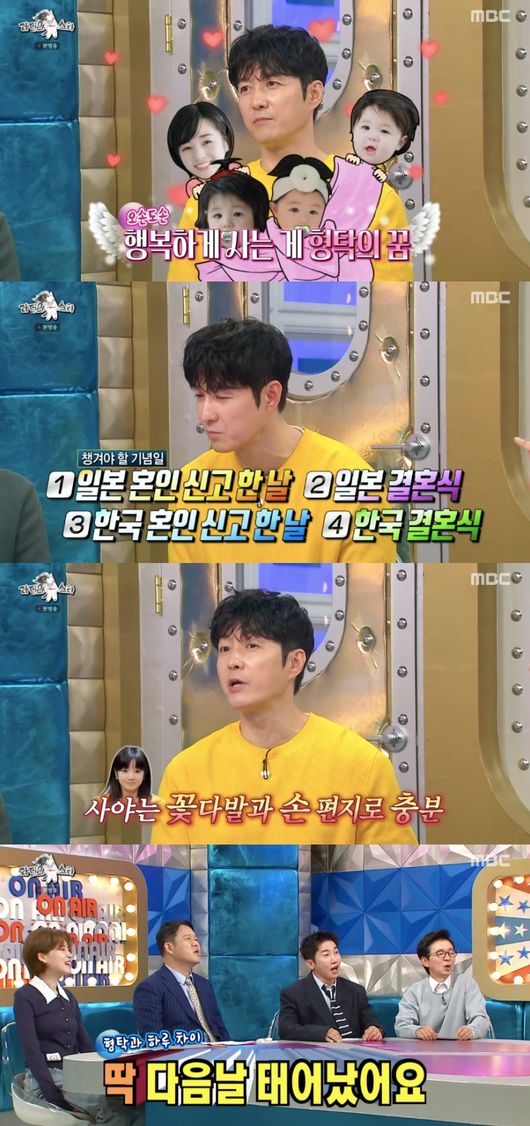 한편, 심형탁은 매일 기념일 챙기면서 더 늙어가고 있다고 말해 궁금증을 안겼다. 이에 대해 “일본은 혼인신고 날을 챙긴다”라며 일본 혼인신고 날, 일본 결혼식, 한국 혼인신고 날, 한국 결혼식 총 4개의 기념일을 챙긴다고 설명했다.