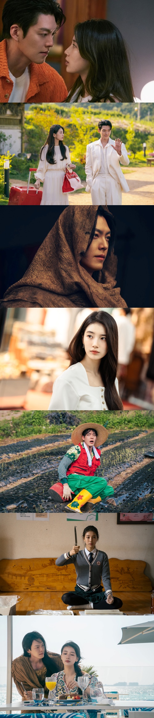 그런 가운데 지니와 가영으로 완벽 변신한 김우빈, 수지의 모습이 공개됐다. 이날 공개된 로맨스 스틸에는 지니와 가영의 반전 매력이 담겨 눈길을 끈다.