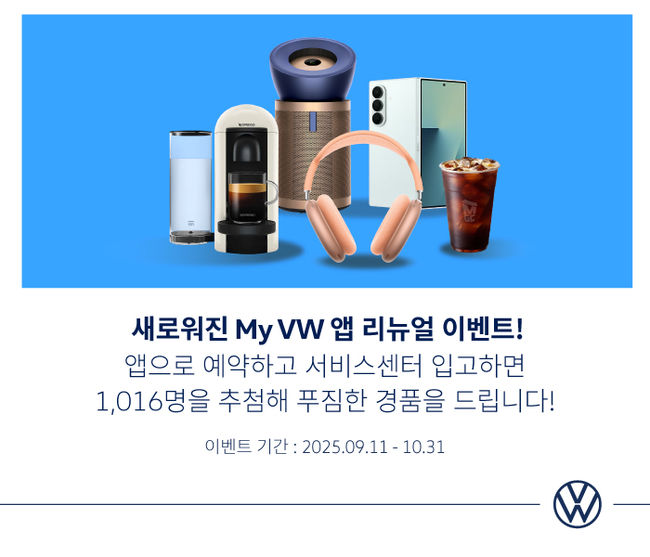 ‘마이 폭스바겐 앱(My VW App)’을 개편한 폭스바겐코리아가 갤럭시 Z 폴드7, 에어팟 맥스 등 굵직한 경품을 걸고 기념 이벤트를 연다.
