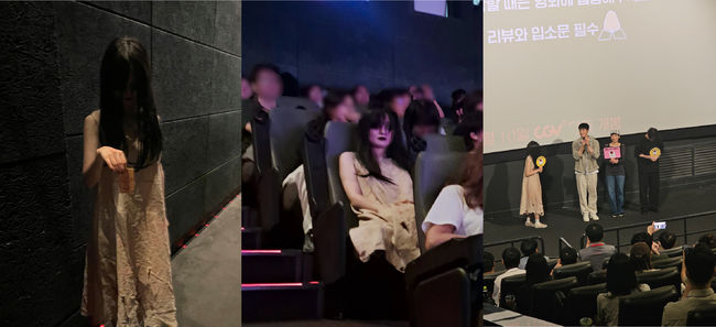 이날은 가장 먼저 '홈캠'을 보러 온 관객께 감사를 전하고자 배우 윤세아, 권혁, 오세호 감독이 무대인사를 가졌다. 그리고 깜짝 게스트인 홈캠 귀신이 출몰해 상영관 입구부터 입장객을 손수 맞이하고, 객석으로 직접 찾아가 가위바위보 게임하기, 셀카 찍기, 서울 3대 점집 궁화신당 부적 선물까지 스페셜한 이벤트로 관객의 텐션을 한껏 끌어올렸다. 또한, 무대인사를 하는 배우와 감독 곁을 서성이며 으스스한 분위기를 연출해 촬영장 못지않은 과몰입을 유발했다.