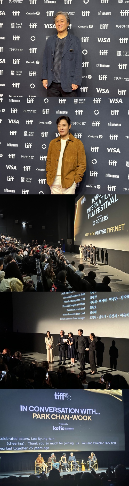 현지 시각 9월 10일(수) 오후 3시에는 TIFF Bell Light box에서 ‘In Conversation with…’ 행사를 성황리에 마무리했다. 박찬욱 감독의 작품 세계를 되짚어 보는 특별한 시간을 가진 가운데, '어쩔수가없다'에 대해 이야기하는 시간에는 이병헌이 합류해 작품에 대한 심도 깊은 대화로 현장 분위기를 달궜다. 이처럼 폭발적인 반응 속 공식 Q&A와 ‘In Conversation with…’ 행사를 마친 '어쩔수가없다'는 높은 완성도로 전 세계 관객들을 사로잡을 전망이다.