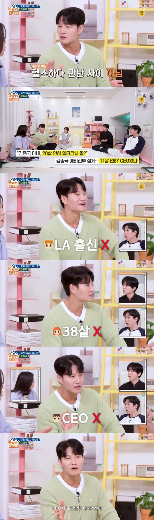 김종국은 자신을 둘러쌌던 소문들을 하나하나 부인했다. 헬스장에서 만난 사이도 아니고, 20살 넘게 나이 차이가 나지도 않으며, CEO도 아니라고 분명히 밝혔다.