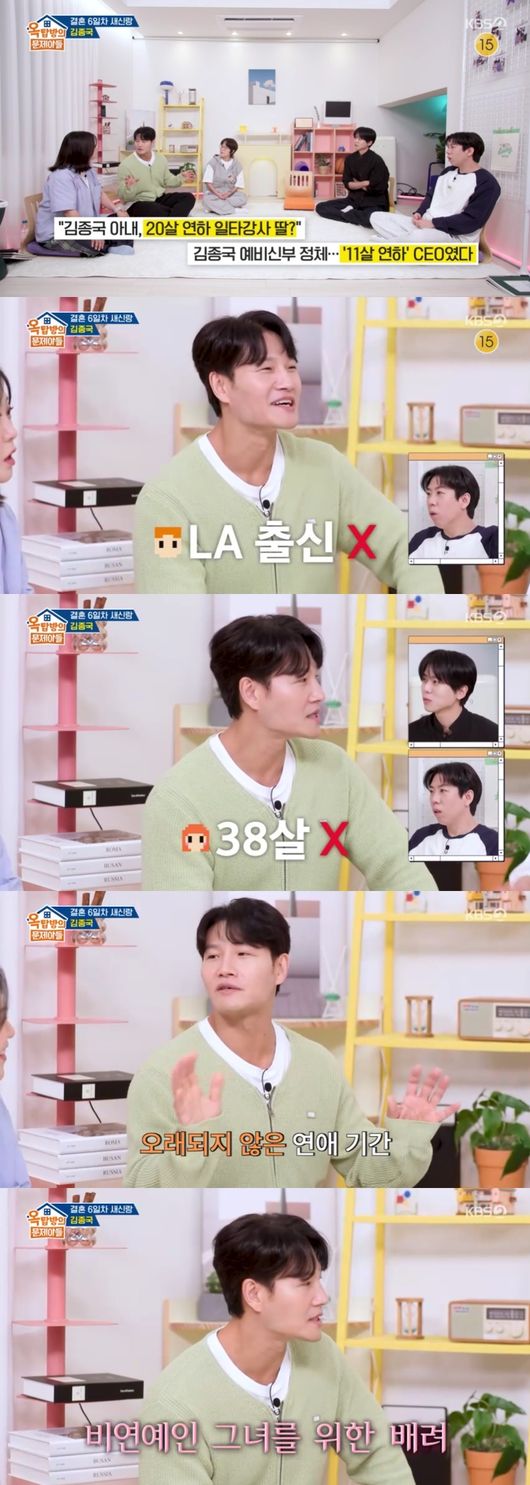 '옥탑방의 문제아들’ 새신랑 김종국이 와이프와 나이 차이가 많이 나지 않는다고 밝혔다.