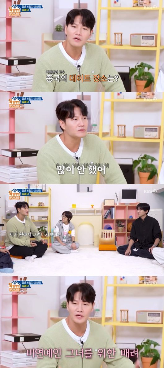 '옥탑방의 문제아들’ 가수 김종국이 '비연예인 아내'와의 결혼 소식을 전하며, 짧았던 연애 기간에 대해 솔직하게 밝혔다.