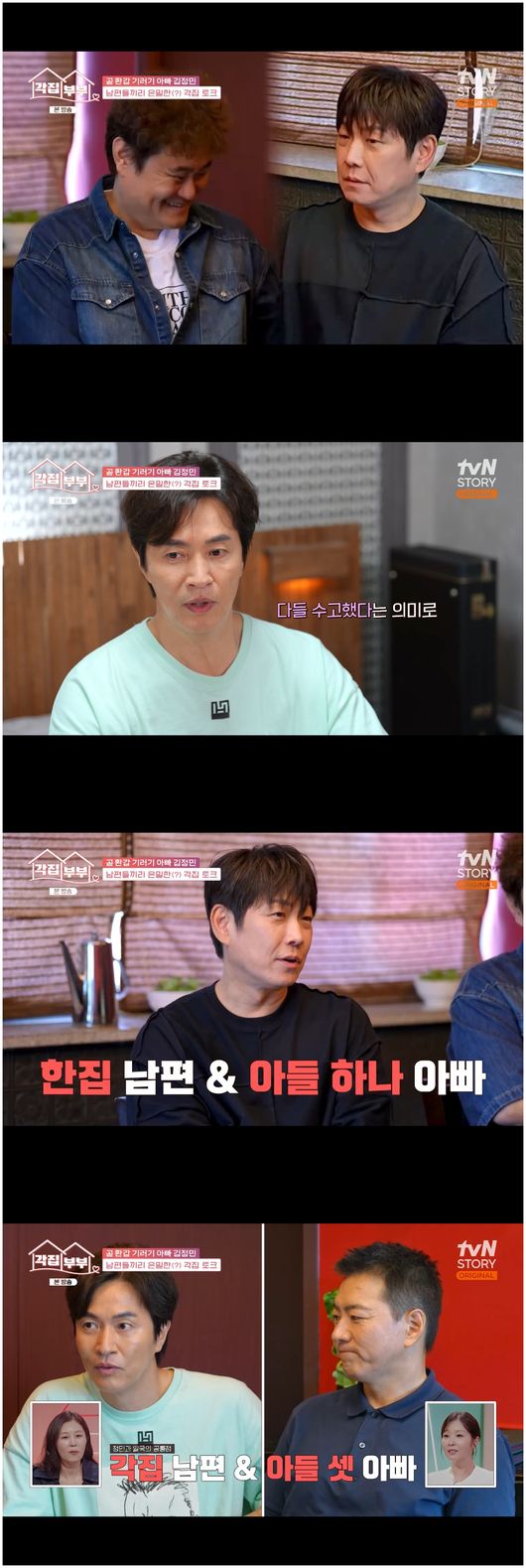 11일 방송한 tvN STORY ‘각집부부’에서는 뮤지컬 '맘마미아!'의 주역인 김정민, 송일국, 민윤기, 김진수가 등장했다. 김정민은 후배들을 데리고 중국집으로 향했다.