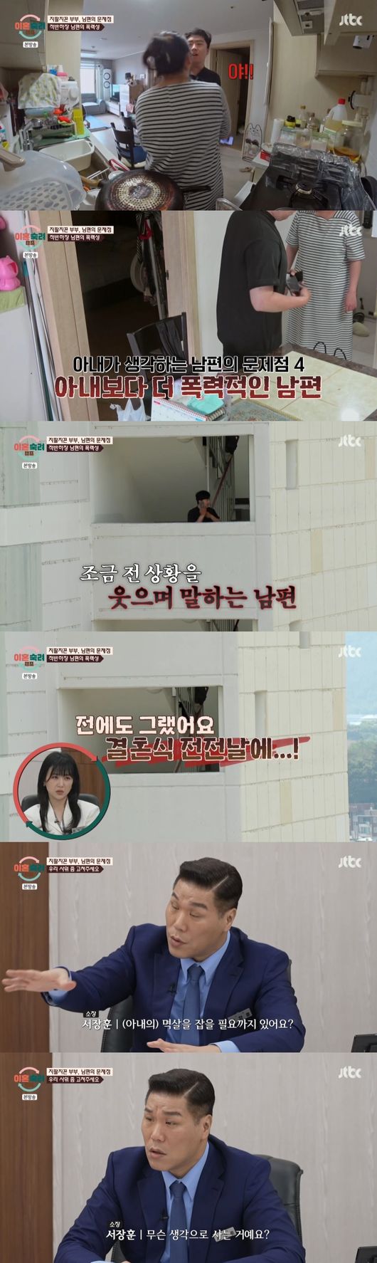 공개된 영상에는 부부의 충격적인 몸싸움이 담겼다. 아내가 남편의 멱살을 잡자, 남편은 아내의 목을 졸랐다. 더욱 놀라운 것은 폭행 후 남편의 태도였다. 밖으로 나간 남편은 친구와 통화하며 조금 전 상황을 이야기하며 웃음을 지었다.