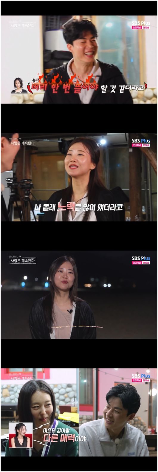 23기 옥순은 “사계 데이트권 누가 누구한테 쓰는지도 관심이 없지 않냐”라며 물었다. 미스터 강은 “내가 알아도 바뀌는 게 없어서 그렇다”라며 덤덤하게 말했다. 그런 그를 본 23기 옥순은 “너무 편하게 있는 걸 보고, 확신이 강해보였다. 나는 확신이 좀 적은 편이었다. 저는 그래서 시간이 걸리는 편이다”라며 신기해했다. 미스터 강은 “저는 그래서 단순하다”라고 말했다. 24기 옥순은 어딘지 분해하면서도 그런 그의 태도가 '확신 넘치는 태도'라고 여겨 호감을 더해갔다.