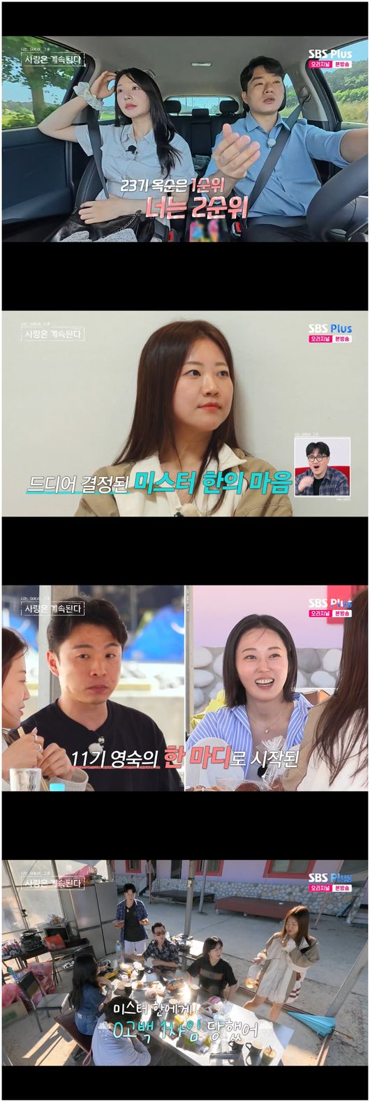 11일 방영한 ENA, SBS Plus 예능 ‘나는 SOLO, 그 후 사랑은 계속된다’(이하 ‘나솔사계’)에서는 23기 옥순에게 마음을 품고 있다가 포기한 채 24기 옥순의 권유로 슈퍼 데이트 권을 사용한 미스터 권, 그리고 11기 영숙과 23기 옥순 사이에서 고민하던 미스터 한, 마지막으로 23기 옥순과 가장 감정적 교류가 잘 된 미스터 강의 모습이 그려졌다.