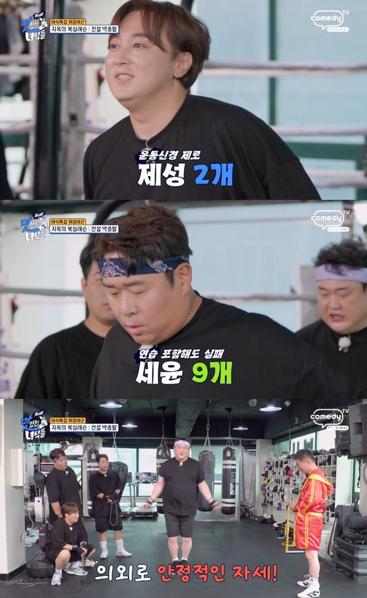 그는 복싱의 기본은 줄넘기라고 말하며 멤버들에게 줄넘기 테스트를 시킨다. 그러나 황제성은 2개를 넘지 못했고, 문세윤은 계속된 재도전 끝에 최고 기록 8개를 갱신했다.