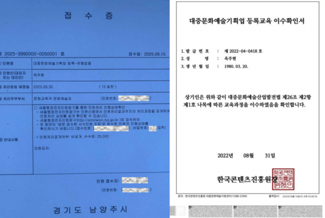 그는 이어 "실수를 인지한 후 곧바로 보완 절차를 밟아 지난 9월 10일 등록 신청을 마쳤고, 현재 승인을 기다리고 있다"라며 "앞으로 모든 절차를 전문가의 도움을 받아 철저히 진행하겠다. 저를 지지해주신 분들께 심려를 끼쳐드린 점 진심으로 사과드린다"라고 전했다. 또 등록 신청 서류와 교육 이수 확인서를 공개하며 투명성을 강조했다.