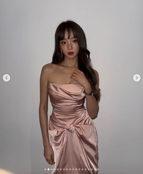 사진 속 이성경은 실크 소재의 오프숄더 드레스를 입고 포즈를 취하고 있다. 그는 웨이브 헤어스타일에 화려한 메이크업으로 공주 자태를 뽐내고 있는 모습이다.