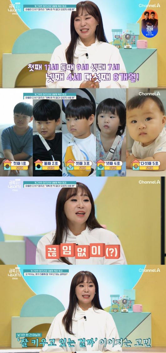 12일 방송된 채널A ‘요즘 육아 - 금쪽같은 내 새끼’에서는 ‘개그우먼 정주리의 금쪽같은 5형제 전투육아’ 사연이 공개됐다.