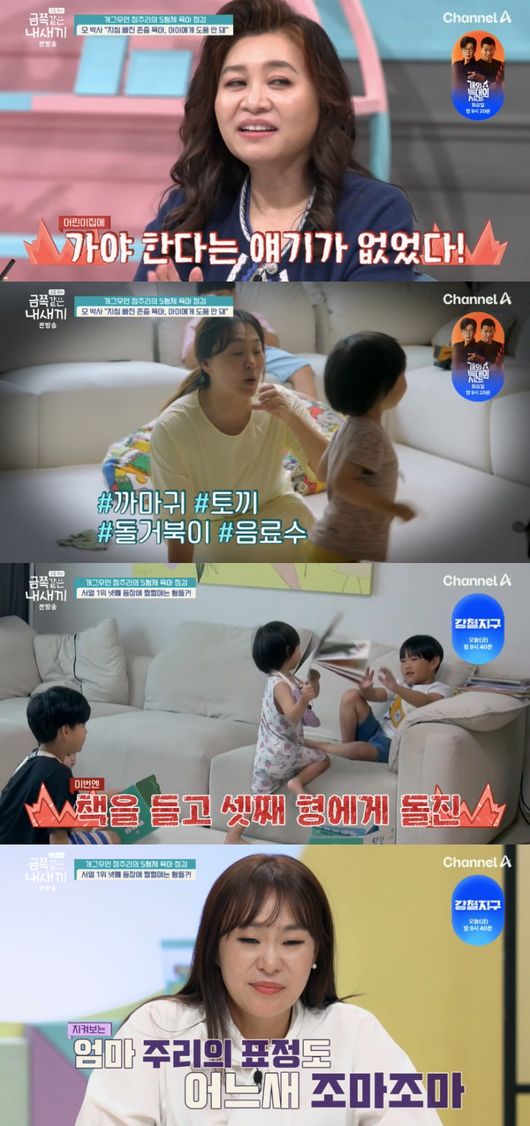 12일 방송된 채널A ‘요즘 육아 - 금쪽같은 내 새끼’에서는 ‘개그우먼 정주리의 금쪽같은 5형제 전투육아’ 사연이 공개된 가운데 넷째의 이상행동이 그려졌다.