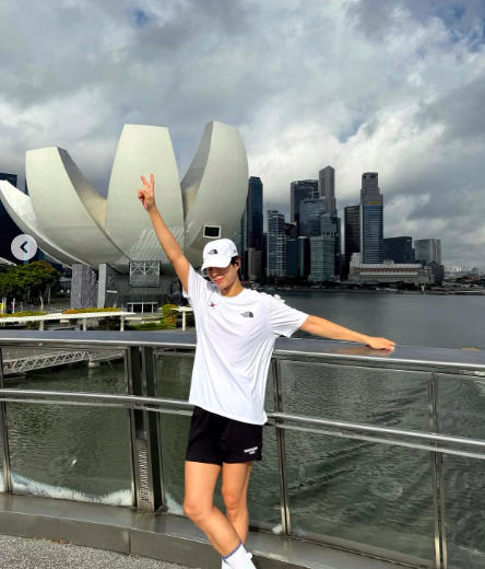 공개된 사진에는 박보검과 다정히 찍은 모습을 담았다. 이어 싱가포르 마리나베이를 배경으로 포즈를 취하고 있는 모습까지 더했다.