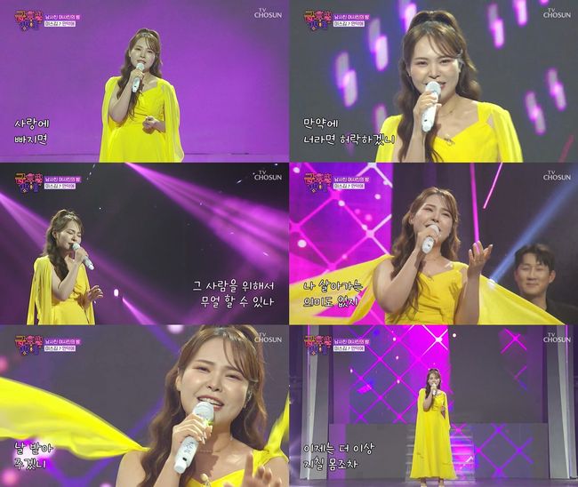 12일 방송된 TV CHOSUN ‘트롯 올스타전: 금요일 밤에’(이하 ‘금밤’)는 조항조, 최진희, 박지후, 유지우 등이 출연한 ‘남사친, 여사친의 밤’ 특집으로 꾸며졌다. 이 날 조항조 팀으로 합류한 미스김은 마지막 라운드에 출격, 에이스다운 면모로 시청자들에게 흥바람이 넘치는 무대를 선물했다.