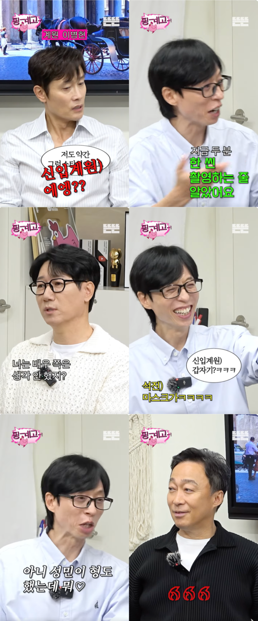 지석진은 유재석에 “너는 배우 쪽은 생각 안 했지? 마스크 때문에”라고 물으며 디스했고, 유재석은 즉각 반발하며 “마스크가 왜. 성민이 형도 있는데”라고 말했다. 이성민은 어이없어하며 “무슨 말을 하는지 모르겠다”고 선을 그었다.