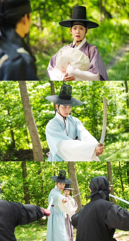 공개된 사진 속 이헌과 연지영은 깊은 산길 속 검은 복면을 한 자객들과 마주하고 있는 절체절명의 순간에 놓여있다. 자신들을 옥죄어오는 서슬 퍼런 칼날에 잔뜩 겁을 먹은 연지영과 이에 맞서 비장하게 검을 빼든 이헌의 모습이 더욱 긴장감을 고조시킨다.