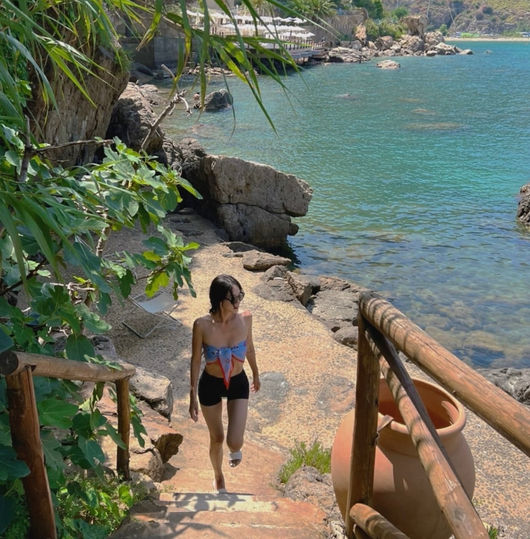이날 한예슬은 끝도 없이 푸른 해변과 햇살이 펼쳐진 외국의 풍경을 조용히 담아낸 한예슬은 자신의 모습도 거울 셀카로 간직했다. 흰색 천이 비스듬하게 덧대진 블랙 미니 원피스를 입은 한예슬은 상큼했다. 작은 얼굴에 기다란 목과 가녀린 체구는 어떤 모습도 소화해내고 있었다. 또한 해변 선비치에서 한예슬은 조금 독특한 비키니를 입어 여전한 패션 소화력을 보여주었다.