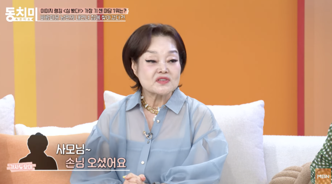 이혜정은 13일 방송된 MBN ‘속풀이쇼 동치미’에 출연, 과거 의사 남편이 바람을 폈을 때를 회상했다.