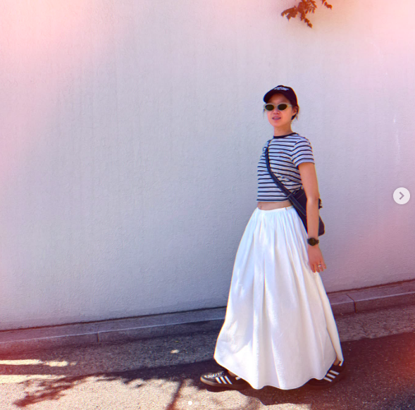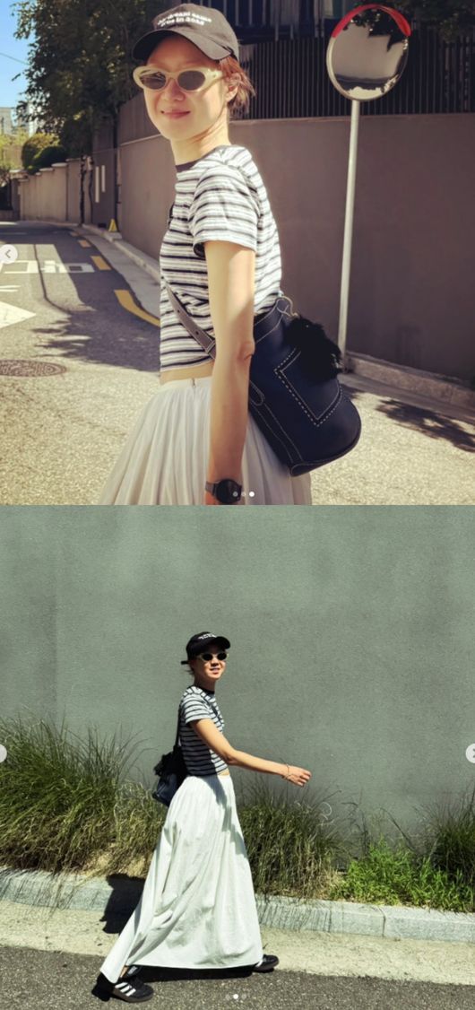 사진 속 공효진은 화이트 롱치마에 크롭 반팔티를 입고, 모자와 선글라스, 운동화를 착용한 채 포즈를 취하고 있다. 연예계 대표 패셔니스타 답게 늦여름 맞이 캐주얼룩을 선보인 모습이다.