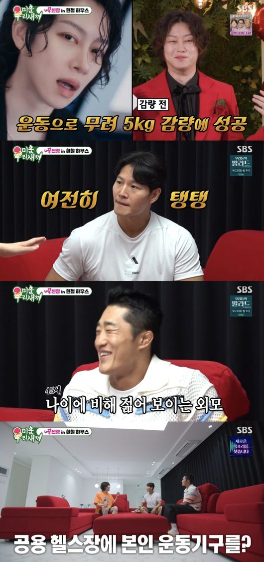 홈짐을 설치했다는 김희철은 “확실히 러닝머신 열심히 하는 게 중요한데 근력 운동이 진짜 중요하더라. 형은 지금 50세가 다 되어가는데 탱탱하잖아”라고 이야기했다.