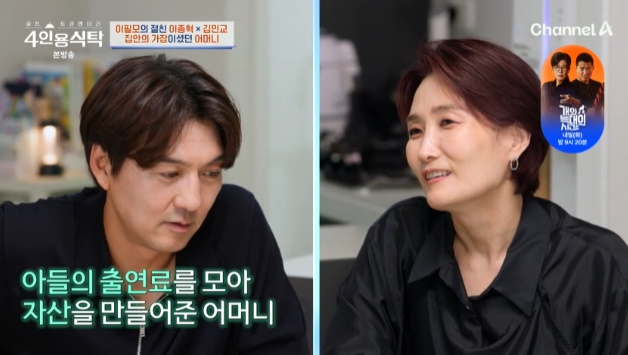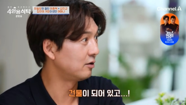 15일 방송된 채널A '절친 토큐멘터리-4인용 식탁'에는 이필모의 집을 찾은 그의 대학 동기 김민교, 이종혁과 박경림의 모습이 그려졌다.