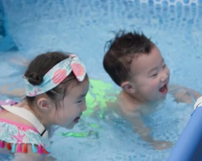장동민의 딸 지우와 아들 시우는 매력이 터지는 수영복 패션으로 시선을 사로잡는다. 지우는 화려한 그래픽의 원피스 수영복에 러블리한 헤어 밴드와 꽃 모양 선글라스까지 매치해 DM 워터파크를 강타하는 ‘꾸꾸 수영패션’의 진수를 뽐낸다. 시우는 형광 컬러의 수영팬츠와 크로스백으로 힙한 매력을 뿜어내 귀여움을 폭발시킨다.