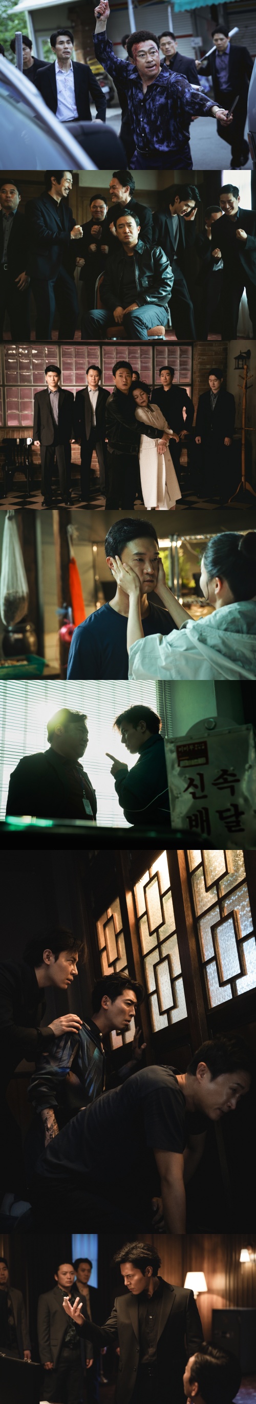 ‘대수’의 갑작스러운 죽음 이후 차기 보스 선거를 진행하며 망연자실한 ‘순태’(조우진)의 스틸은 진심으로 보스를 하고 싶지 않은 그의 모습으로 극의 아이러니를 더하며 과연 어떤 방향으로 영화가 흘러가게 될 지 호기심을 불러일으킨다.