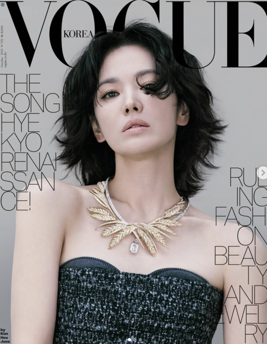 특히 자유롭게 흩날리는 듯한 단발 헤어는 세련되면서도 도도한 분위기를 자아내 팬들의 폭발적인 반응을 이끌고 있다. 송혜교의 인스타그램과 보그 공식 계정에 공개된 커버컷은 수백만 건의 ‘좋아요’를 기록하며 화제를 모았다.