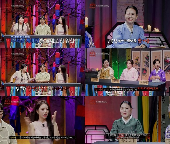 최근 진행된 SBS Life ‘신빨 토크쇼-귀묘한 이야기’(이하 귀묘한 이야기) 25회 촬영에서 MC 이국주는 이야기의 주제인 ‘사자’를 공개하며 “올해 무속, 저승사자 등 세계관을 K-POP으로 풀지 않았냐. 혹시 봤냐?”라고 말문을 열었다.