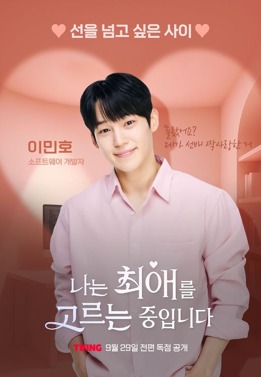 특히 천우진의 캐릭터 포스터에는 훈훈한 비주얼과 함께 '선을 넘고 싶은 사이', '몰랐어요? 제가 선배 짝사랑한 거'와 같은 설레는 문구들이 담겨 있어 궁금증을 자아낸다.