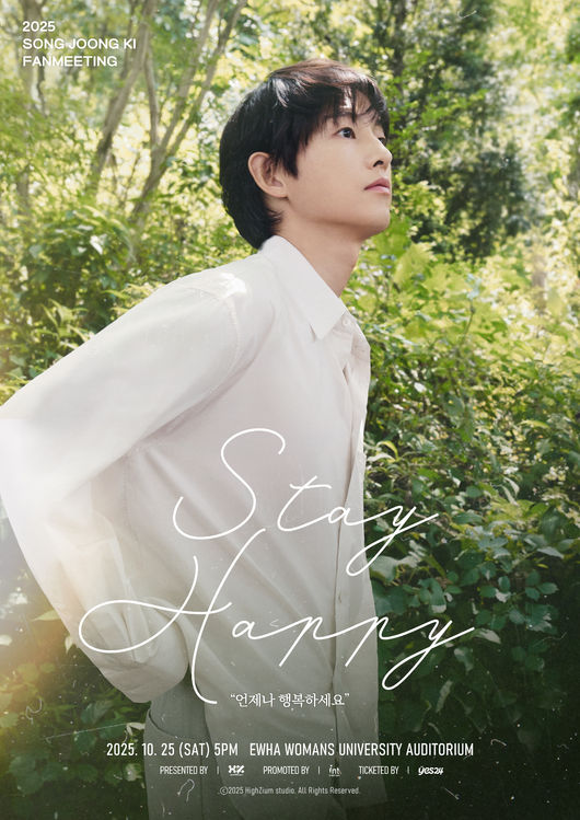 17일 소속사 하이지음스튜디오는 송중기의 팬미팅 ‘2025 SONG JOONG KI FANMEETING – Stay Happy’의 개최 소식과 함께 메인 포스터를 공개했다.