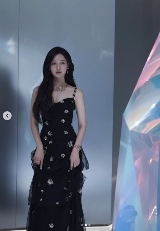 공개된 사진에는 화려한 보석을 착용하고 미모를 자랑하고 있는 김지원의 모습이 담겨 있었다. 김지원은 꽃무늬가 장식된 검정색 드레스를 입고 매혹적인 자태를 뽐냈다. 자연스러운 웨이브가 들어간 헤어스타일에 새하얀 피부가 더해져 고혹적이면서도 우아한 비주얼을 완성했다.