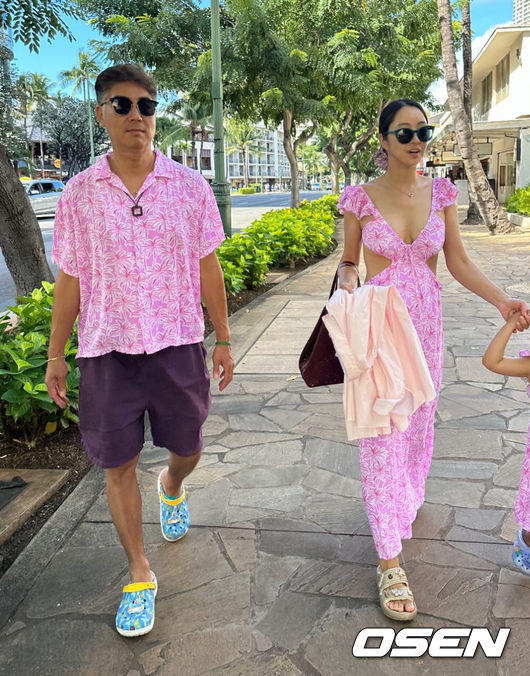 네티즌들은 "패밀리룩 너무 튀고 좋아 보인다", "남편 카리스마 있는 표정으로 핑크 소화하는 거 너무 웃긴다", "남편이 아이 잘 봐준다더니 딸 취향에 맞춰줬나 보다" 등 다양한 반응을 보였다.