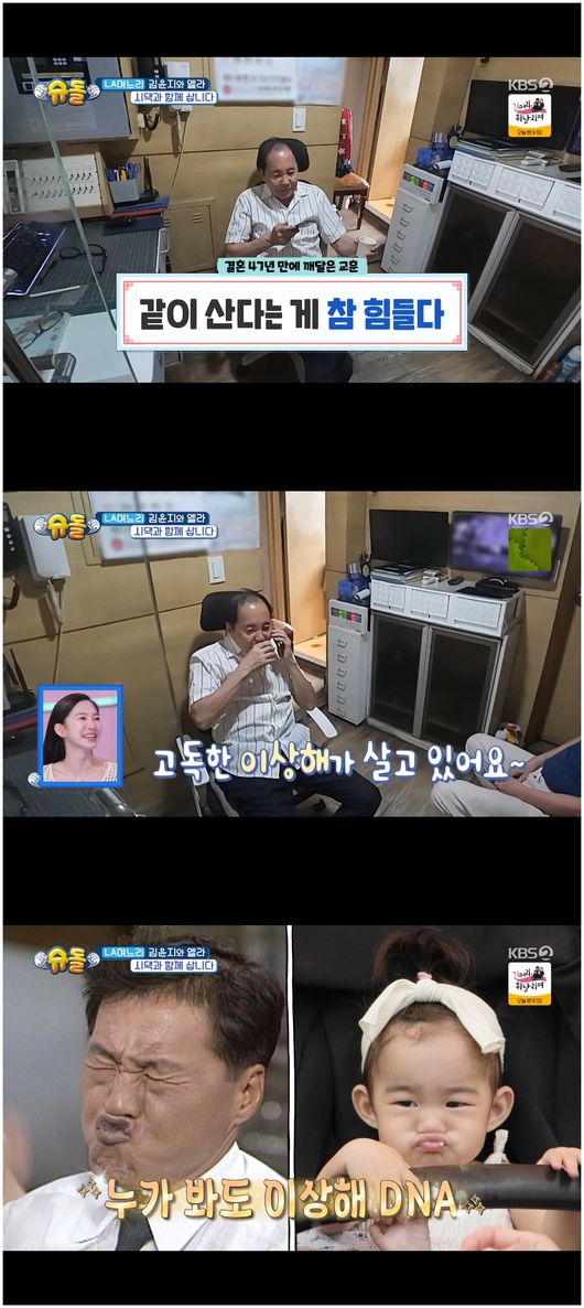 김윤지가 이렇게 활약하고 있는 사이, 이상해는 손녀의 웃음을 위해 친히 재롱을 떨어주다가 지쳐버렸다. 이상해는 “이건 좀 너무 하지 않니?”라고 말하다 “할아버지가 책임질게, 해라”라면서도 “애가 왜 이러지?”라며 한살배기 손녀를 보며 의아해해 웃음을 안겼다. 김윤지는 “고생하셨죠? 아버님, Are you okey?”라며 물었으나 이상해는 “무슨 Are you okey냐”라고 말해 웃음을 안겼다.