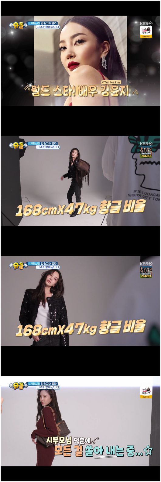 김윤지는 다양한 옷차림을 무리 없이 소화했다. 박수홍은 "어떻게 이게 애 엄마야"라며 놀라워했다. 168cm에 47kg의 늘씬하고 탄탄한 몸매로 스튜디오를 감탄에 빠뜨린 이윤지. 안영미는 “정말 다 가졌다. 얼굴도 예쁘고 영어도 잘하고 몸매도 예쁘다”라며 부러움을 담아 칭찬했다.
