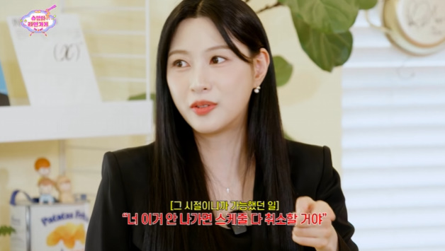 이에 시우민은 "자진해서 나간거냐"라고 물었고, 오하영은 "저는 아니었다"라고 솔직하게 밝혔다. 그러자 시우민은 예상했다는 듯 "아니죠? 끌려간거죠?"라고 말했고, 오하영은 "(회사에) 지금은 안 계시는 대표님이 '너 이거 안 나가면 스케줄 다 취소할거야' 그러셨다"라고 협박에 어쩔수 없이 출연하게 됐음을 알렸다.