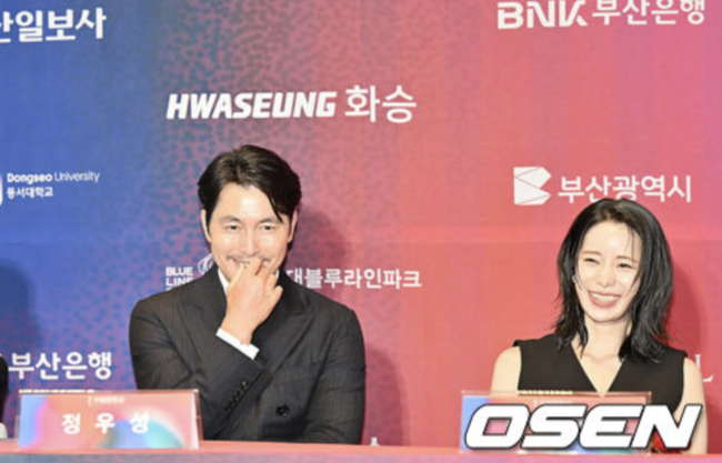 배우 정우성과 임지연이 부일영화상 핸드프린팅 행사에서 나란히 앉은 모습이 포착돼 화제를 모았다.